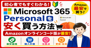 具体的な購入手順や価格の見方は、Microsoft 365 Personalを安く買う方法|Amazonオンラインコード版が最安で解説しています。